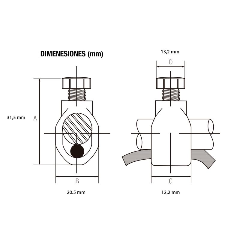 - Dimensión C: 12,2 mm / Dimensión D: 13,2 mm.