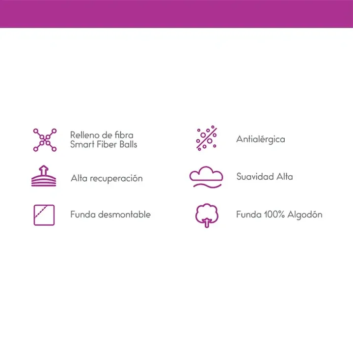 Su relleno de fibras Smart Fiber Balls permite mantener la forma y brindar una sensación mullida, mientras que su funda de algodón aporta frescura y suavidad al contacto.