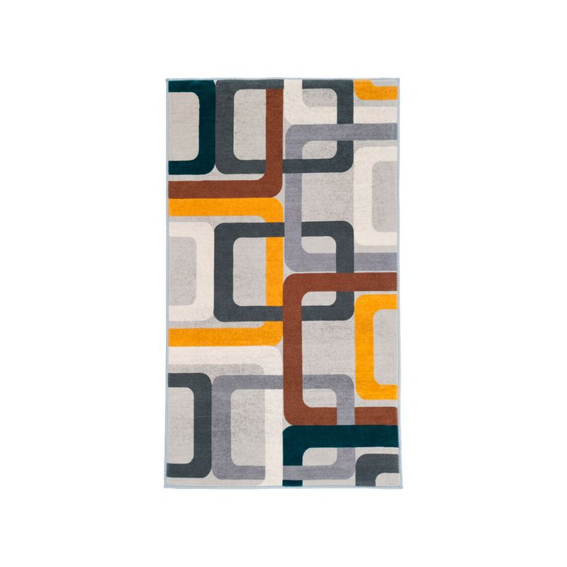La bajada de cama Casa Viva con diseño de rectángulos de colores ofrece una combinación perfecta entre confort y estilo. Su textura tipo cachemira de 1200g brinda suavidad al tacto, mientras su patrón geométrico en tonos grises, blanco y amarillo realza cualquier dormitorio.