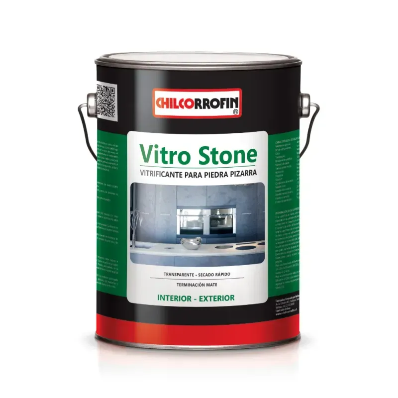 El Barniz Mate Vitro Stone Chilcorrofin está formulado especialmente para vitrificar y proteger muros de piedra pizarra natural, realzando su apariencia sin alterar su color característico.
