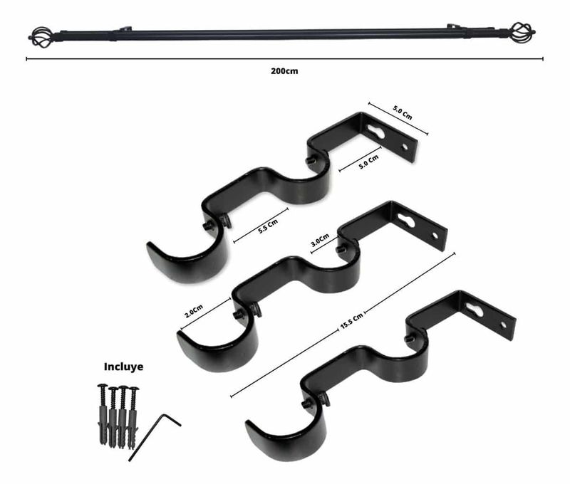 Decoración e IluminaciónCortinas y RollersBarras y Rieles para CortinasBarra Cortina Kit 19/28Mm 2.00Mt Fierro Negro Metalhsa