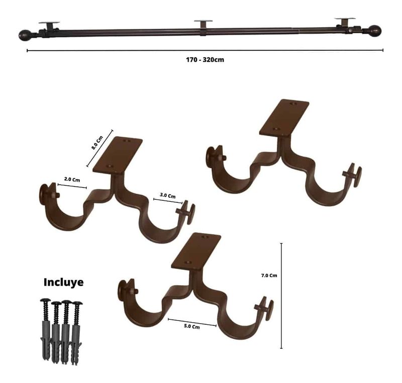 Barra Cortina Kit 16/19Mm 170X320Cm Techo Extensible Metal Cafe Bola Metalhsa