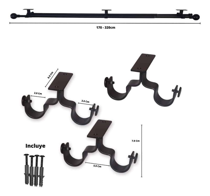Barra Cortina Kit 16/19Mm 170X320Mt Techo Extensible Metal Negro Bola Metalhsa
