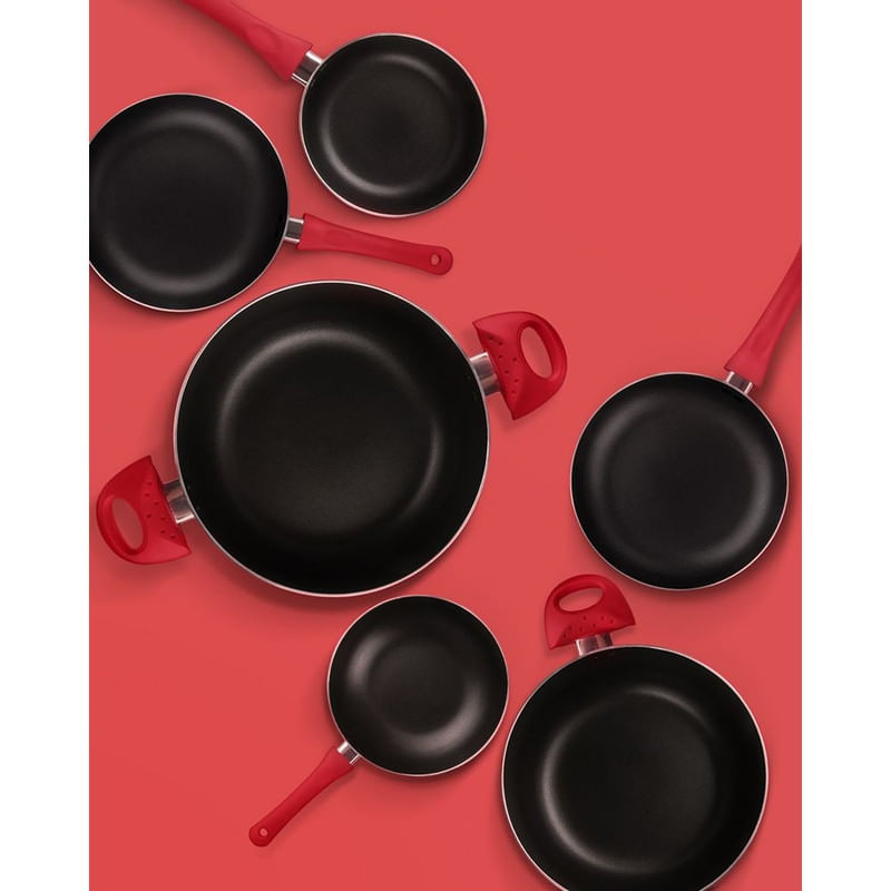 - Contenido: Cacerola de 1.30L, 2 cazuelas de 4.65L y 2.65L, wok de 3.70L, sartén de 1.70L y 4 tapas de vidrio.