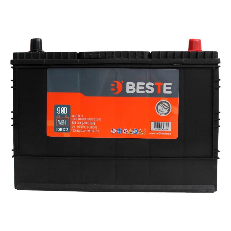 La batería automotriz Beste 90Ah 650CCA con polo positivo derecho está diseñada para entregar un arranque seguro y eficiente en todo tipo de condiciones. Su alta capacidad permite un suministro estable de energía al sistema eléctrico del vehículo. Es una batería sellada, lo que evita mantenciones frecuentes. Ideal para reemplazos confiables.