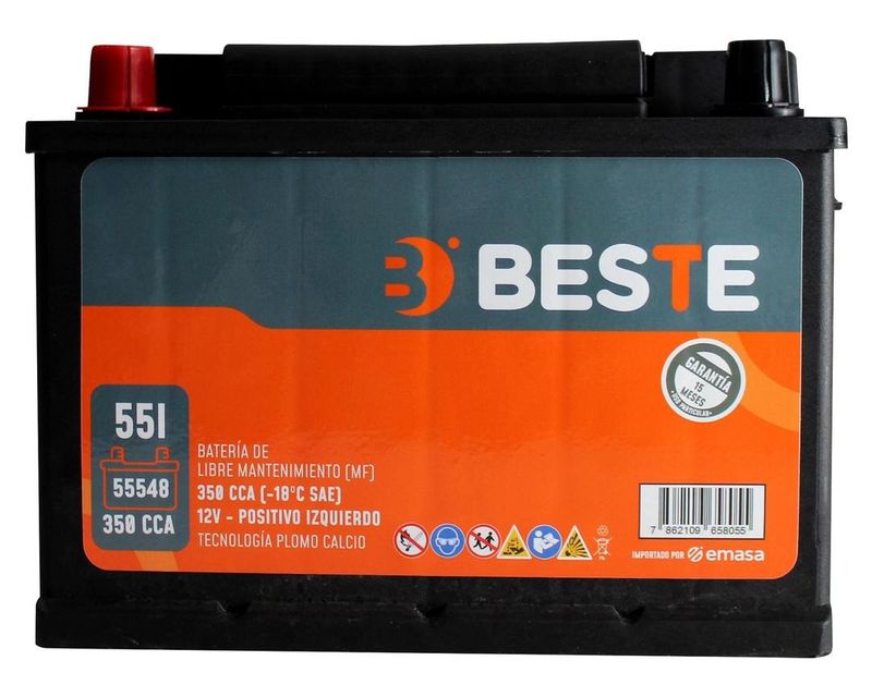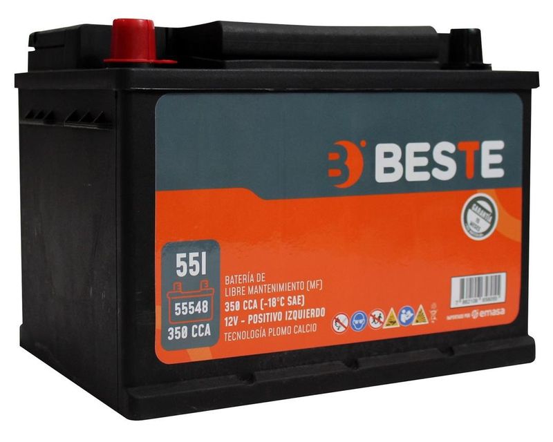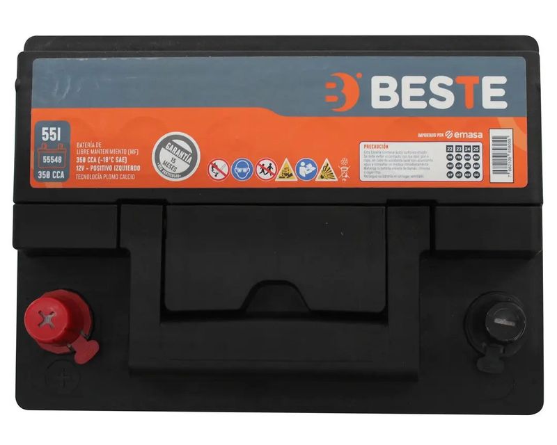 La batería para auto Beste 55Ah 350 CCA con positivo izquierdo está diseñada para entregar un rendimiento confiable y un arranque seguro en vehículos que requieren esta configuración específica. Su capacidad de 55 amperios-hora proporciona una alimentación constante al sistema eléctrico, mientras que su potencia de arranque en frío permite un encendido eficiente incluso en condiciones de bajas temperaturas.