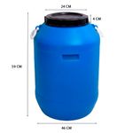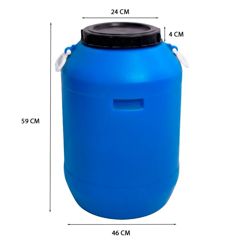 Gracias a su boca ancha y tapa negra, permite una manipulación cómoda y una limpieza sencilla, siendo ideal para uso doméstico, agrícola o industrial donde se requiere capacidad y robustez.