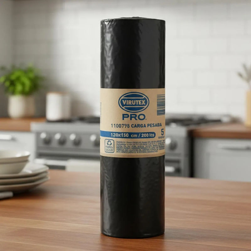 Las bolsas de basura Virutex Pro 120 x 130 cm están diseñadas para soportar residuos de gran volumen, facilitando su traslado sin riesgos de roturas ni derrames, incluso en usos exigentes.