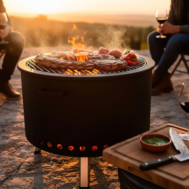 Diseñado para disfrutar de asados y momentos al aire libre, este brasero parrillero de doble combustión permite cocinar y compartir sin molestias de humo, ofreciendo una experiencia más limpia y cómoda en terrazas, jardines, camping o playa con amigos y familia.