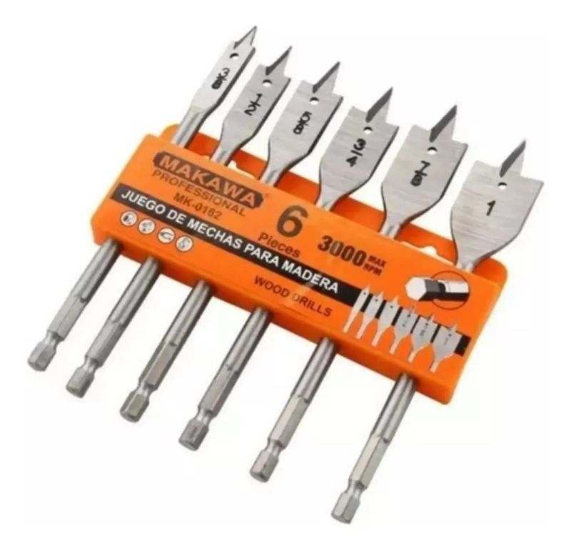 El set de brocas paleta Makawa de 6 piezas es ideal para realizar perforaciones limpias y eficientes en distintos tipos de madera.