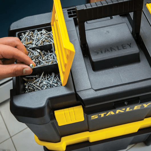 La caja de herramientas Stanley 3 en 1 está diseñada para ofrecer una solución completa de almacenamiento, combinando organización, capacidad y facilidad de transporte en un solo equipo.