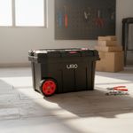 La caja para herramienta URO de 24 pulgadas con ruedas es una solución práctica para almacenar y transportar equipos de trabajo. Fabricada en plástico resistente, protege eficazmente los elementos guardados en su interior. Con un compartimento amplio, ofrece espacio suficiente para herramientas de diferentes tamaños.