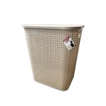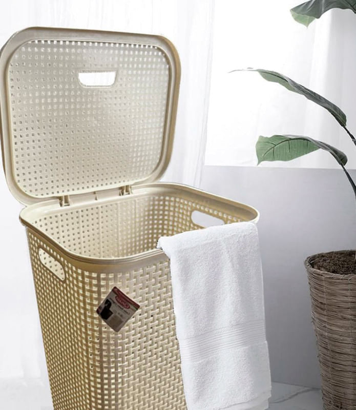 Fabricado en poliratán, un material plástico resistente a la humedad, el agua, el polvo y la luz solar, ofrece durabilidad y fácil mantención. Su diseño elegante en color beige y la tapa incluida lo hacen ideal para distintos espacios como la loggia, el baño o el dormitorio, integrándose armónicamente a la decoración del hogar.