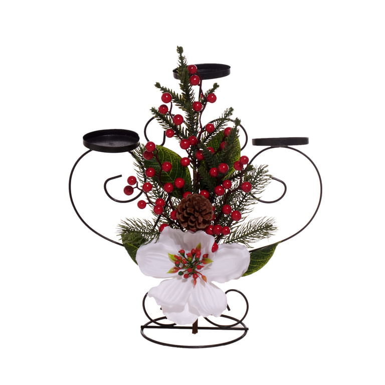 Este candelabro es el acento ideal para una mesa tradicional, aportando el espíritu clásico de la Navidad de manera elevada y notoria. Úselo para crear una iluminación ambiental con una vela o simplemente como una imponente figura decorativa. Es la pieza perfecta para quienes buscan un centro de mesa de gran tamaño y con un diseño clásico.
