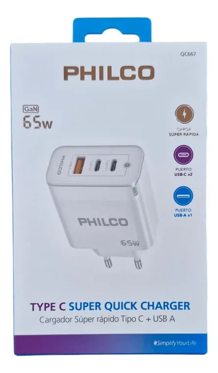 Cargador Tipo C Carga Rapida + Usb Philco Qc667 Philco