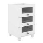 Cuenta con tres cajones con rieles metálicos que facilitan la apertura y cierre, además de ruedas que permiten mover el mueble con facilidad. Su acabado en color blanco aporta un estilo limpio y moderno que combina con distintos ambientes.