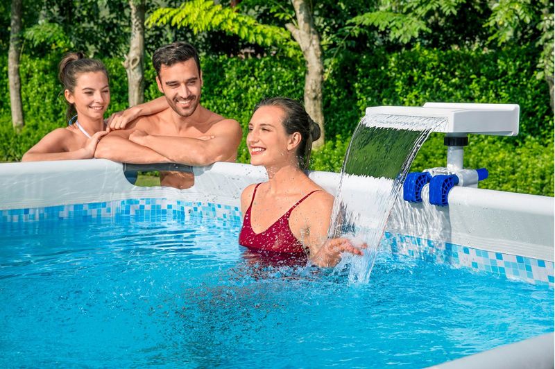 Compatible con piscinas elevadas con marco (excepto paredes de acero) y bombas de filtro de 2006-11335 L (530-3000 gal). Las luces y la cascada se usan juntas o por separado.