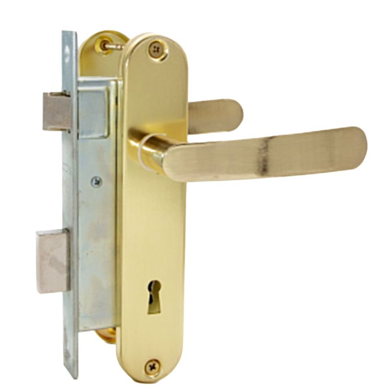 Compatible con puertas de madera en espacios interiores, incluye los elementos necesarios para una instalación rápida y segura. Su terminación en color bronce combina con distintos estilos de manillas y herrajes, aportando una estética clásica y duradera. Es una alternativa funcional para renovar cerraduras de dormitorio con un mecanismo confiable y operación fluida en el tiempo.