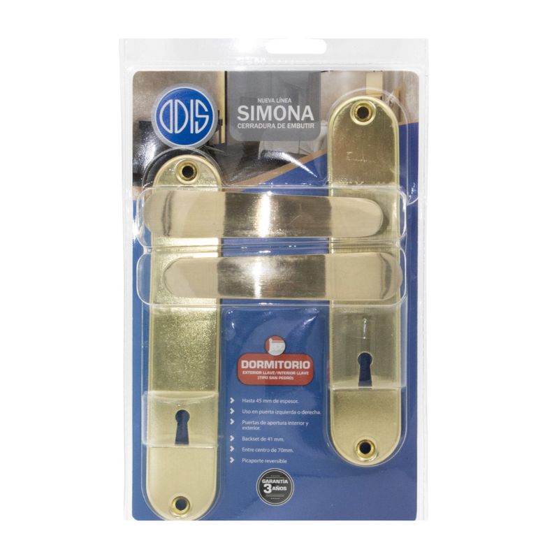 La cerradura de embutir Odis Simona 7040 para dormitorio en terminación bronce es una solución práctica para puertas interiores que requieren privacidad y uso cómodo. Su sistema de seguro interior permite bloquear desde dentro de forma simple, ideal para dormitorios u oficinas del hogar. El diseño de embutir se integra de manera discreta en la puerta, ofreciendo un funcionamiento estable y confiable para el uso cotidiano.