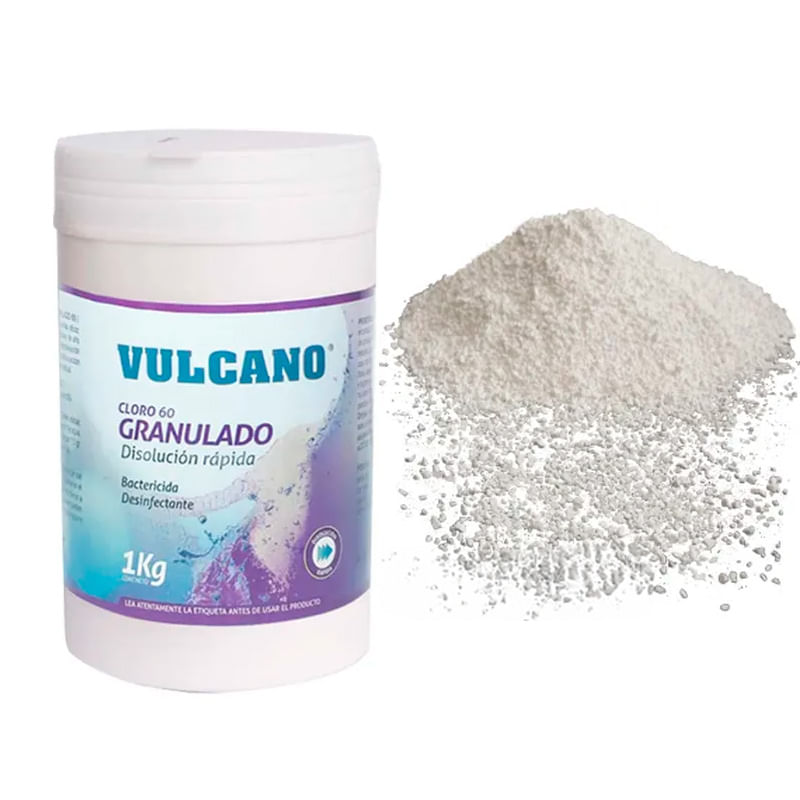 Este cloro granulado de Vulcano es un poderoso desinfectante y bactericida, ideal para el tratamiento del agua de tu piscina. Su fórmula a base de Ácido dicloro isocianurato al 60% se hidroliza de forma rápida, eliminando eficazmente gérmenes y microorganismos. Además, está estabilizado para resistir la acción de los rayos solares y cuenta con un alto poder residual, lo que asegura una protección continua en el agua.