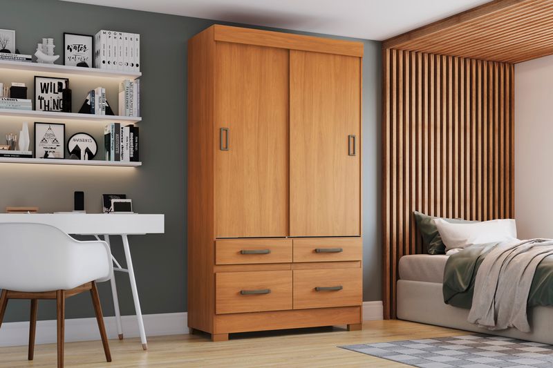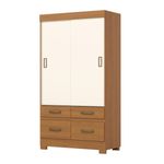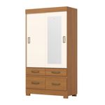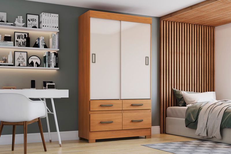 El closet de 2 puertas corredizas y 4 cajones Cinamomo Off White Briz es ideal para habitaciones pequeñas, permitiendo un acceso cómodo sin ocupar espacio adicional al abrir sus puertas.