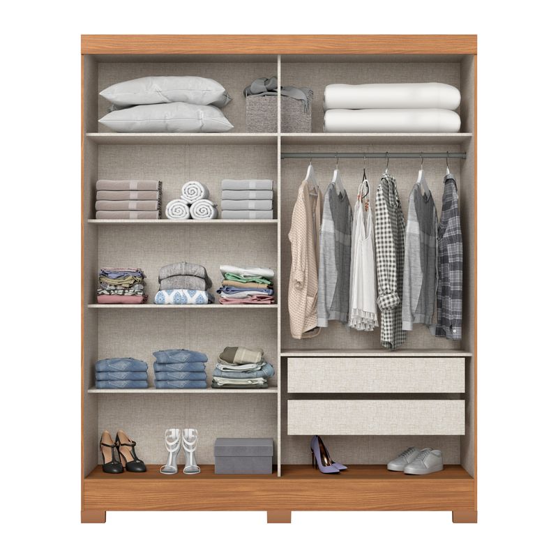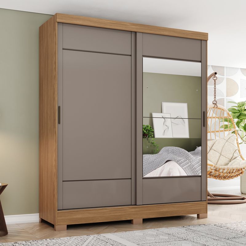 El closet de 2 puertas corredizas Nature Avela Briz es ideal para dormitorios medianos o pequeños, permitiendo un acceso cómodo sin ocupar espacio adicional al abrir sus puertas.