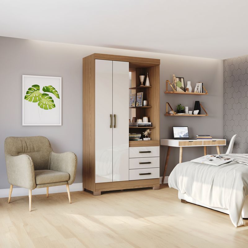 El closet de 2 puertas con espejo es ideal para optimizar espacios, integrando almacenamiento y tocador en un solo mueble. Su diseño compacto permite mantener todo ordenado sin ocupar demasiado espacio.
