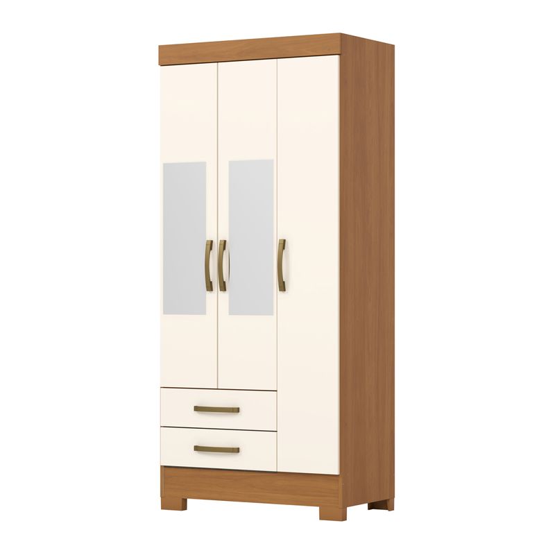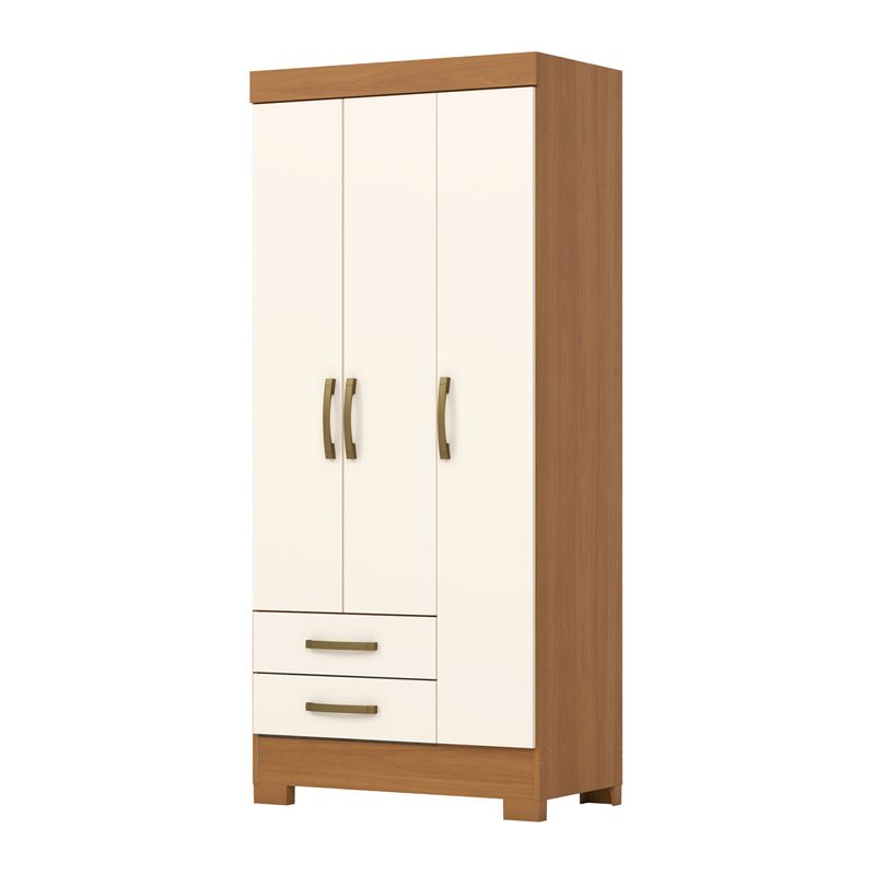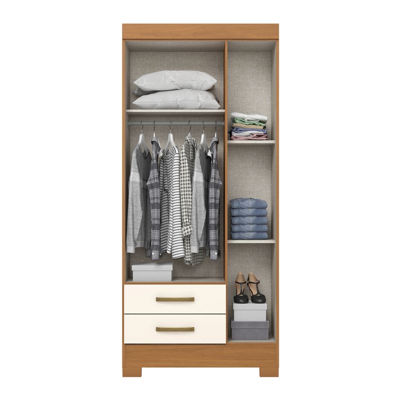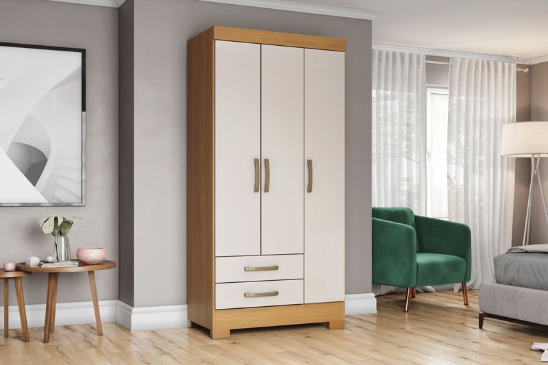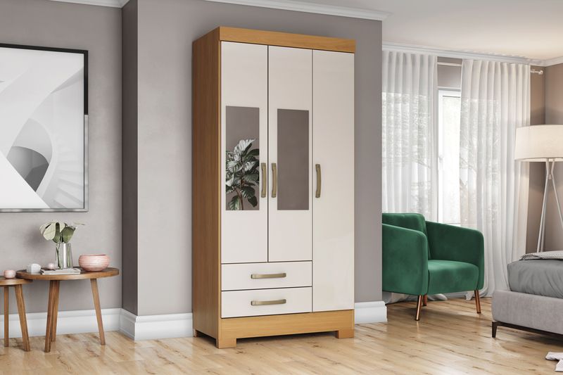 El closet de 3 puertas y 2 cajones Cinamomo Off White Briz ofrece una distribución interna pensada para aprovechar cada espacio, permitiendo organizar ropa y accesorios de forma ordenada.