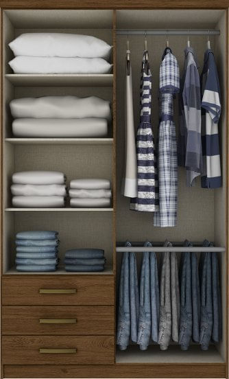 Con medidas de 2.05 m de alto, 1.21 m de ancho y 46 cm de profundidad, este closet se adapta perfectamente a diversos espacios. Los cajones cuentan con guías metálicas para un deslizamiento suave, mientras que el perchero de madera resistente garantiza la durabilidad y funcionalidad del armario.