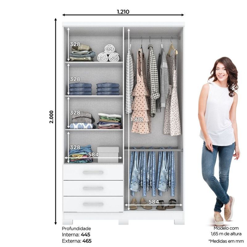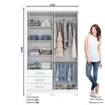 Con una estructura sólida fabricada en MDF y MDP, este clóset es duradero y funcional. Sus dimensiones son 2,00 m de alto por 1,21 m de ancho. La funcionalidad se ve reforzada por sus cajones con guías metálicas para un uso práctico y sus tiradores de ABS, adaptándose perfectamente a cualquier dormitorio donde el estilo natural y la organización sean una prioridad.