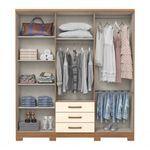 La organización interna es uno de sus mayores atractivos, ya que cuenta con 7 repisas y 3 percheros de madera revestida, permitiendo una clasificación detallada de todo el vestuario. Sus 3 cajones se deslizan sobre guías de metal para un manejo suave, y los tiradores de ABS complementan las patas, asegurando un mueble duradero y estable.