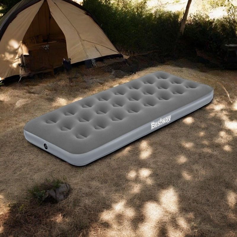 El colchón inflable individual de Bestway combina practicidad y confort en un diseño ligero y resistente. Es perfecto tanto para uso doméstico como para actividades al aire libre, brindando una superficie cómoda y estable para un descanso reparador. Su construcción en vinilo resistente y su estructura tubular aseguran durabilidad y soporte adecuado.