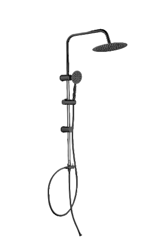 La columna de ducha Mixa redonda en color negro entrega una experiencia de uso práctica y moderna, integrando un diseño elegante que realza cualquier baño.