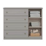 Esta Cómoda Americana de HENN combina el estilo clásico con una alta funcionalidad. Su amplio diseño de 126 cm de ancho por 101 cm de alto incorpora cuatro cajones y una puerta, ofreciendo una solución de almacenamiento mixto generosa para organizar ropa y objetos personales.