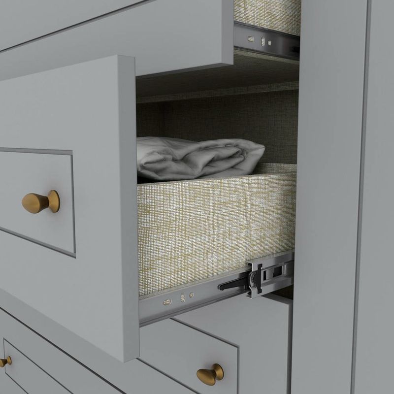 - Cajones equipados con guías metálicas para un deslizamiento suave y duradero.
