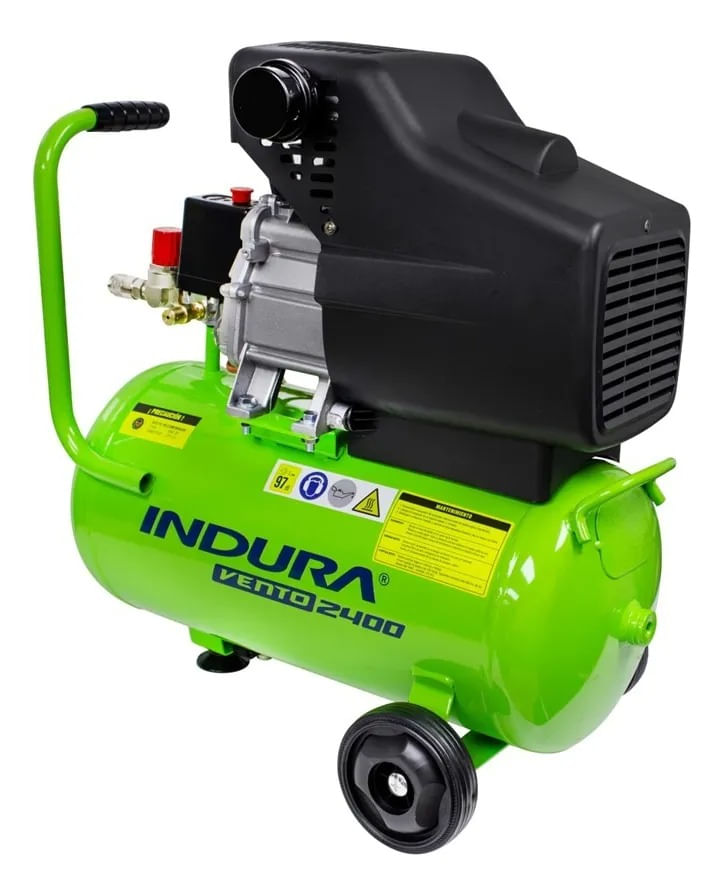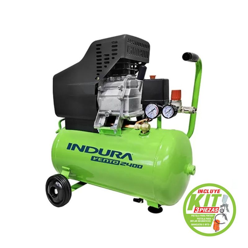 El compresor Vento 2400 de 2 HP con estanque de 24 litros ofrece potencia y estabilidad para todo tipo de trabajos, desde pintura aerográfica hasta inflado y limpieza. Su sistema lubricado con aceite asegura una vida útil prolongada y funcionamiento suave.