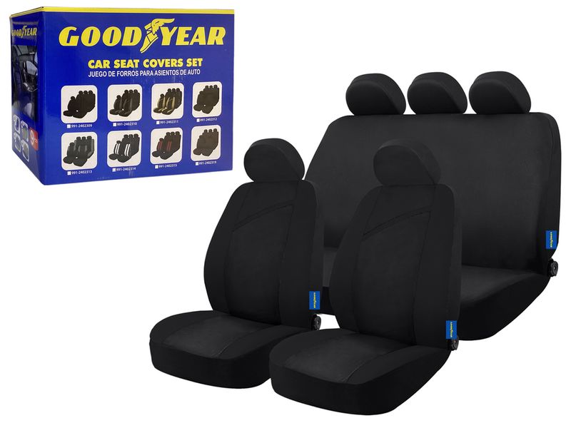 El cubre asiento Goodyear negro de 9 piezas brinda una protección eficaz para el interior del vehículo. Su material de poliéster resistente ayuda a prevenir el deterioro por uso diario, polvo o humedad, manteniendo los asientos como nuevos y mejorando la apariencia del habitáculo.