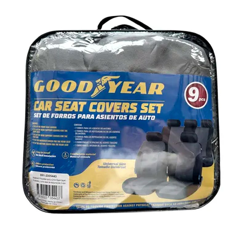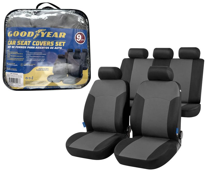 CUBRE ASIENTO PARA AUTOS 9 PIEZAS NEGRO/GRIS GOODYEAR