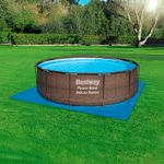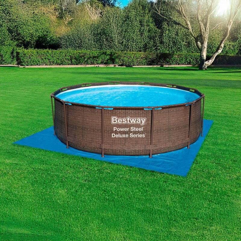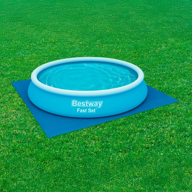 El Cubre Piso de 396 x 396 cm de Bestway es un accesorio esencial para cualquier piscina elevada, diseñado para proporcionar una capa de protección adicional y prolongar la vida útil de tu piscina. Fabricado con vinilo y polietileno previamente probado y resistente, este cubre piso azul crea una barrera duradera entre el suelo y el fondo de tu piscina, protegiéndola de rocas, ramas, raíces u otros residuos afilados del suelo que podrían causar daños o perforaciones.