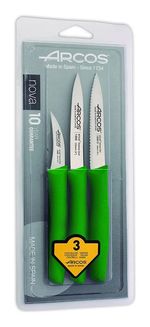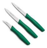 El set de cuchillos mondadores Arcos Nova verde de 3 piezas está especialmente diseñado para tareas de precisión como pelar y preparar frutas, verduras y tubérculos. Sus hojas de acero inoxidable ofrecen un filo eficiente y duradero, ideal para un trabajo ágil y controlado en la cocina diaria.