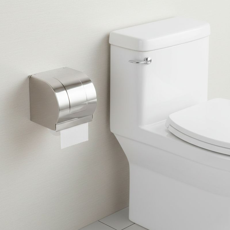 Este modelo está diseñado para un rollo y cuenta con una tapa que protege eficazmente el papel higiénico de salpicaduras de agua y polvo, mejorando la higiene. Su instalación es de tipo pared, lo que ahorra espacio, y su colocación es sencilla y segura gracias al kit de anclaje (tornillos y tarugos) que viene incluido.