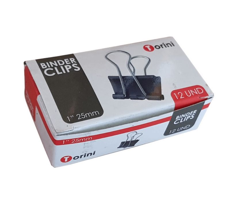 Los clips dobles Torini de 25 mm están confeccionados totalmente en metal, permitiendo sujetar una gran cantidad de papeles con firmeza y estabilidad. Su diseño evita dañar las hojas y facilita un agarre cómodo al momento de ordenar.