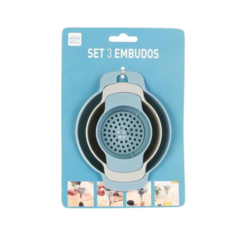 Cocina y MenajeMenaje CocinaUtensilios de CocinaEmbudos Con Filtro 3 Unidades 11X10Cm Homewell