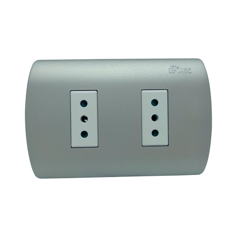 Gasfiteria y ElectricidadEnchufes y PlacasPlacas ArmadasEnchufe Embutido Doble 2P+T 10A Blanco Silver Mec