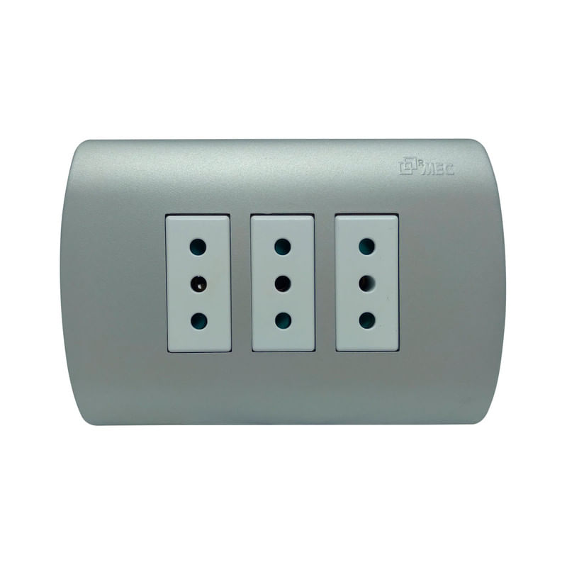 El enchufe embutido triple MEC Blanco Silver 10A permite conectar tres equipos al mismo tiempo de forma segura, optimizando el espacio y la organización en cualquier habitación. Su diseño embutido mantiene una estética limpia y ordenada.