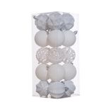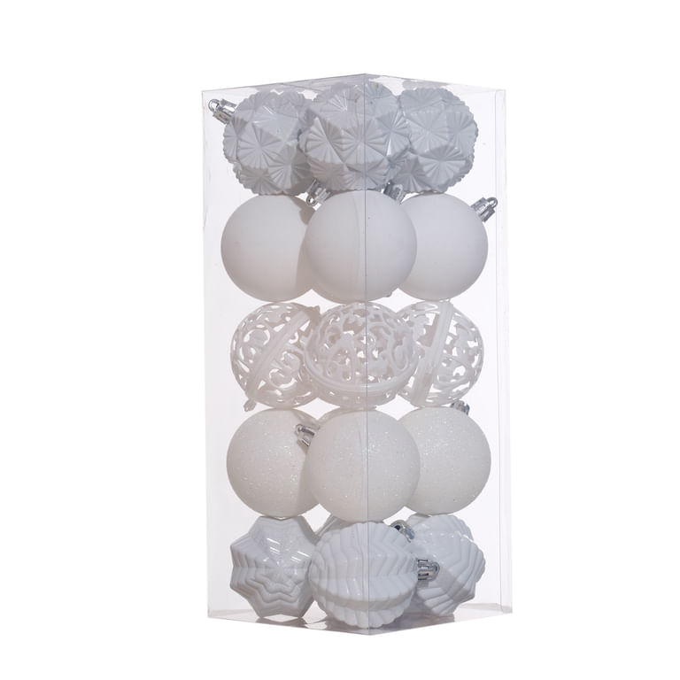 Este set incluye adornos livianos de poliestireno que facilitan la instalación en ramas finas sin sobrecargar el árbol. El diámetro uniforme garantiza una composición equilibrada y permite repetir el patrón de color en distintos niveles. La combinación de acabados realza la iluminación ambiental y ayuda a crear profundidad visual en la decoración.
