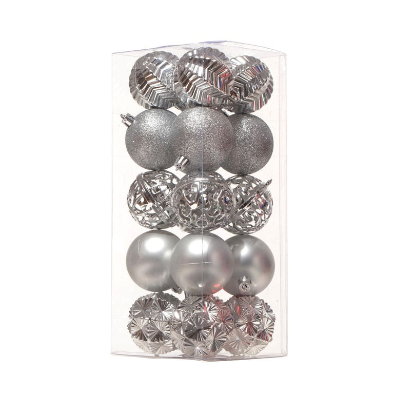 Este set incluye adornos livianos de poliestireno que facilitan la instalación en ramas finas sin sobrecargar el árbol. El diámetro uniforme garantiza una composición equilibrada y permite repetir el patrón de color en distintos niveles. La combinación de acabados realza la iluminación ambiental y ayuda a crear profundidad visual en la decoración.