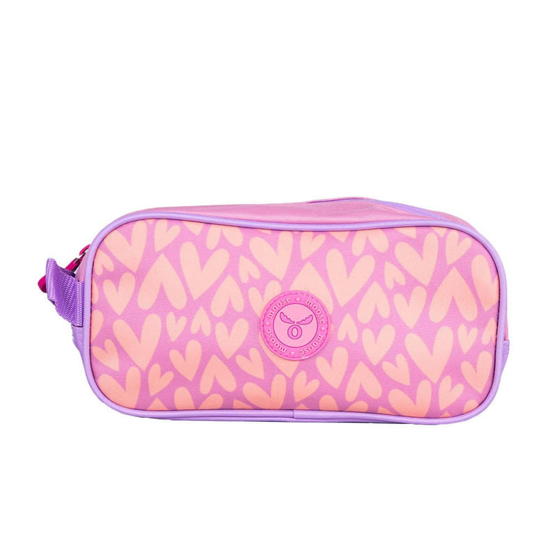 El estuche escolar Kids Hearts Moose está fabricado en poliéster de alta calidad, ofreciendo una solución práctica y duradera para mantener los útiles escolares ordenados durante toda la jornada.