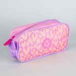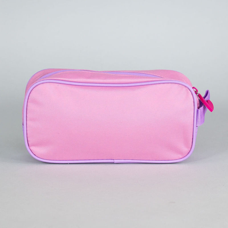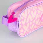 Su diseño de corazones en color rosa, junto a su asa y cierres reforzados, lo convierten en una opción funcional y atractiva para niños que buscan organización con un toque de estilo.