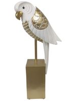 Su diseño tipo loro la convierte en un objeto coleccionable y atractivo. Los detalles dorados en alas, pico y base añaden un toque sofisticado. Es perfecta para complementar la decoración del hogar. Un acento decorativo con personalidad.